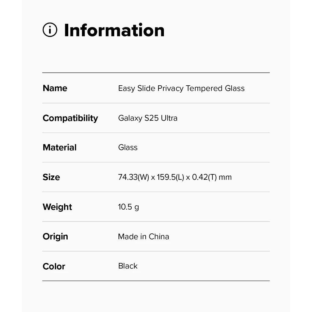 Ringke Privacy Easy Slide for Samsung Galaxy S25 Ultra - Anti Spy Tempered Glass Screen Protector